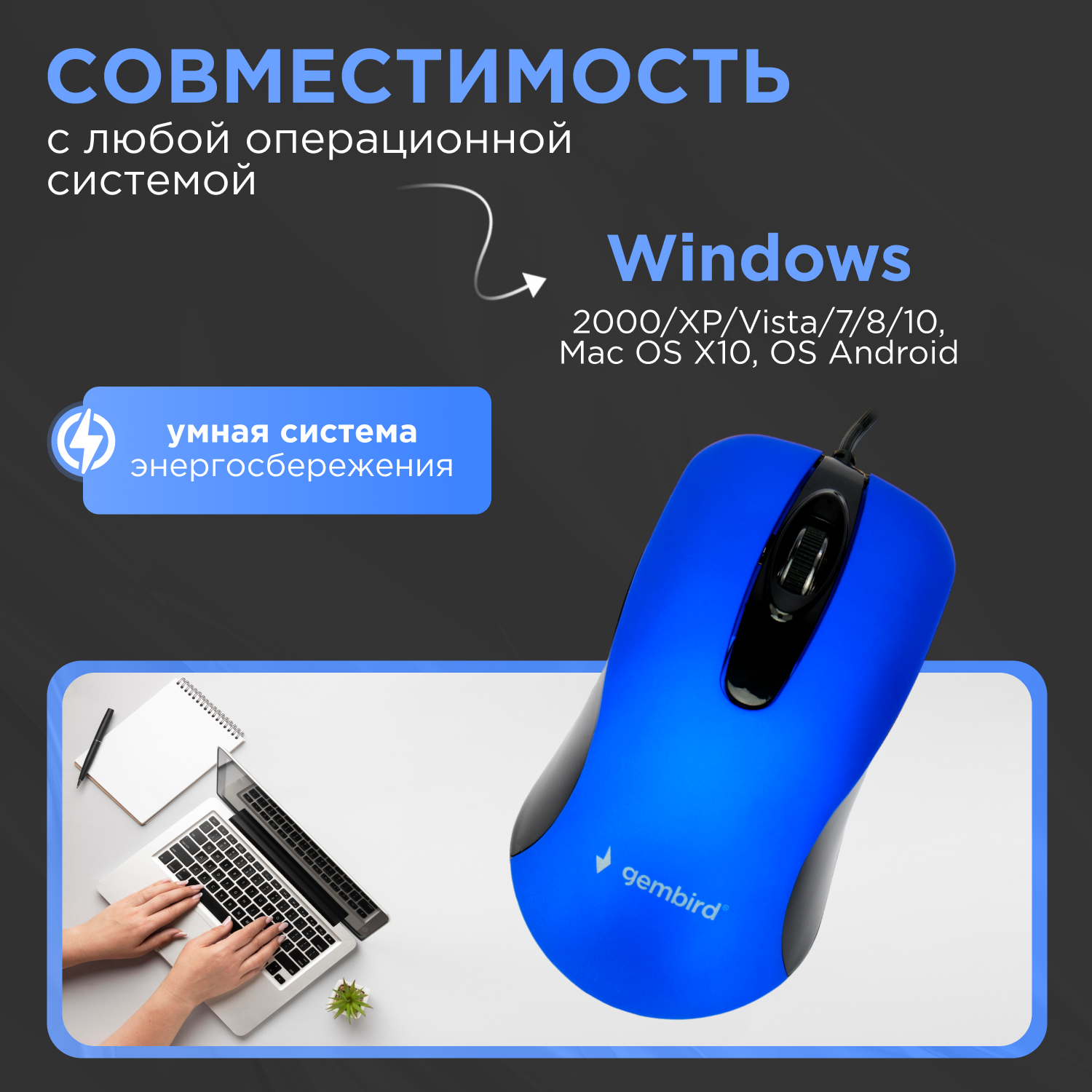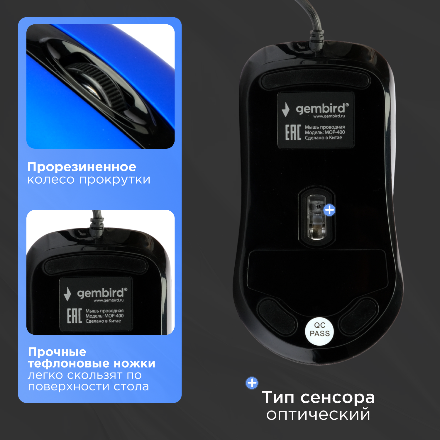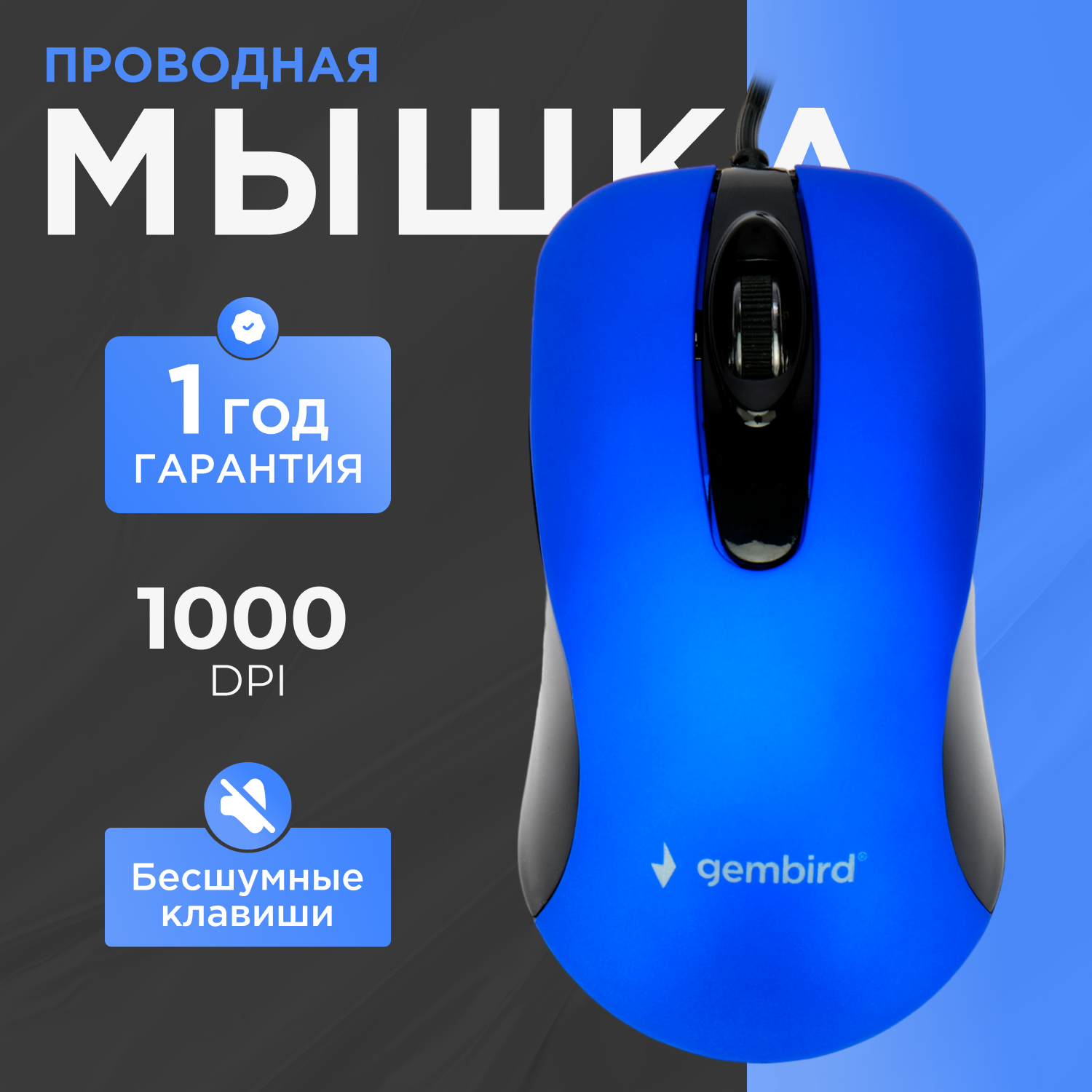 Мышь проводная Gembird MOP-400-B, 1000 dpi, USB, синий/черный