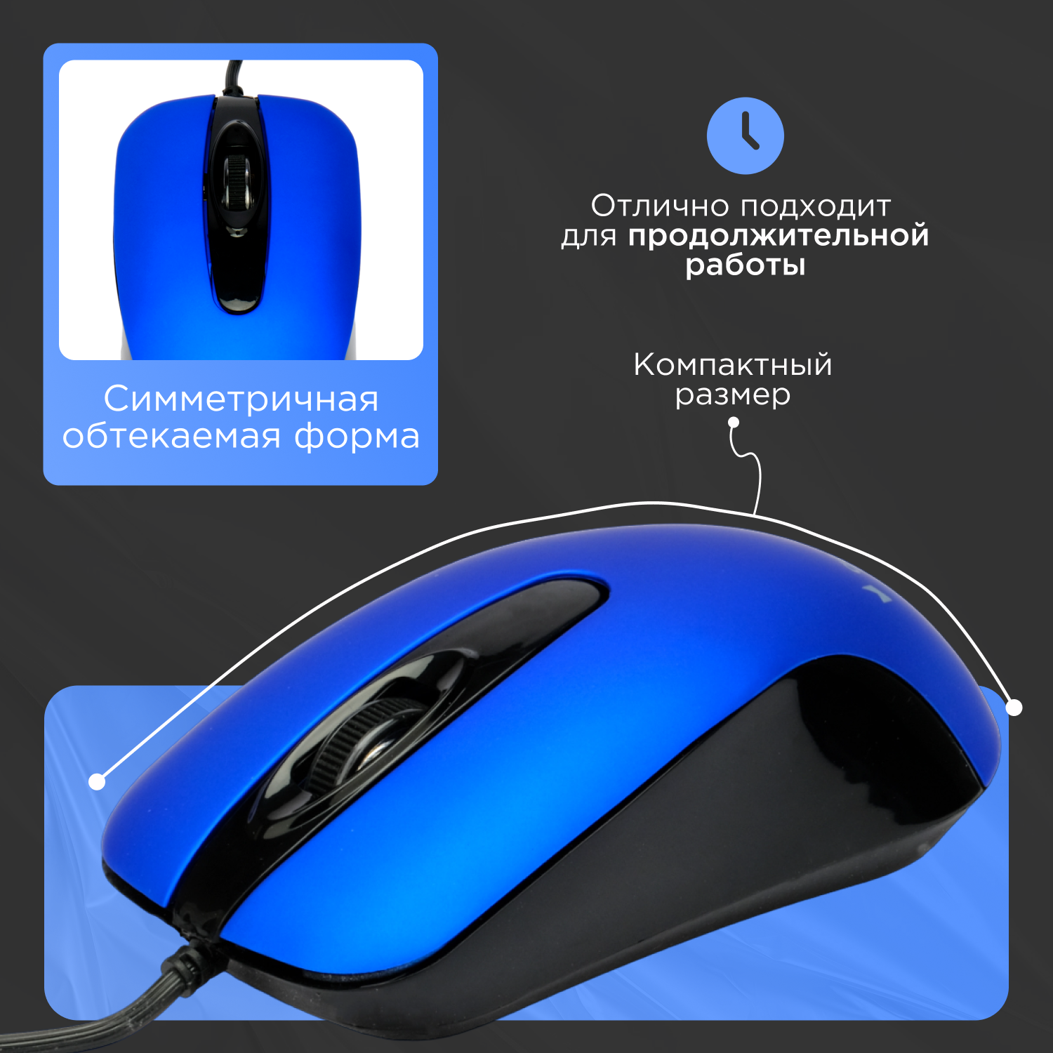 Мышь MOP-400, проводная, оптическая, бесшумная, 1000 dpi, USB, чёрно-синяя