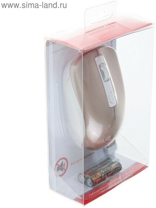 Мышь MUSW-400, беспроводная, бесшумная, 1600 dpi, 2xAAA, USB, золотистая