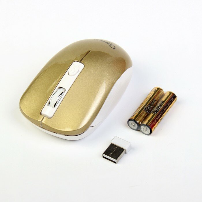 Мышь Gembird MUSW-400, беспроводная, бесшумная, 1600 dpi, 2xAAA, USB, цвет золото Gembird 2258114 .