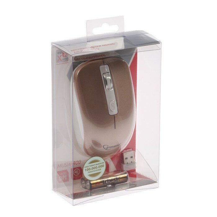 Купить Мышь Gembird MUSW-400, беспроводная, бесшумная, 1600 dpi, 2xAAA, USB, цвет золото