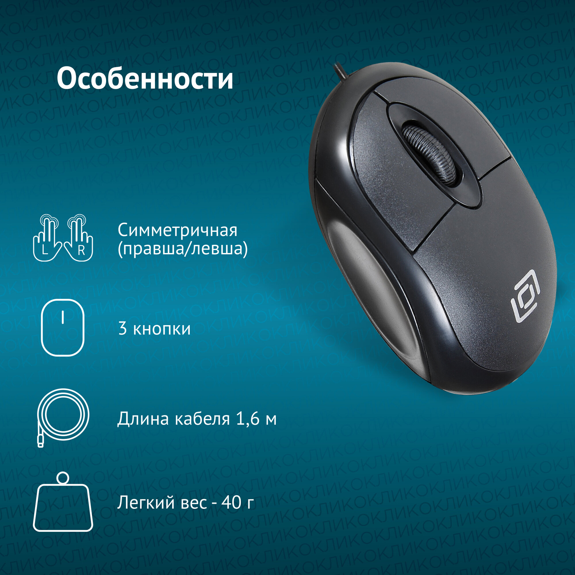 Мышь Oklick 105S, оптическая, проводная, USB, черный [400941]