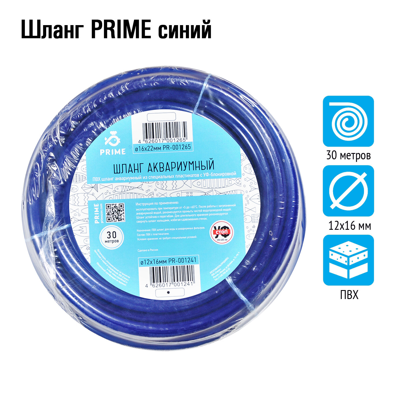 Шланг аквариумный Prime, 12/16 мм, синий, 30 м интересное: