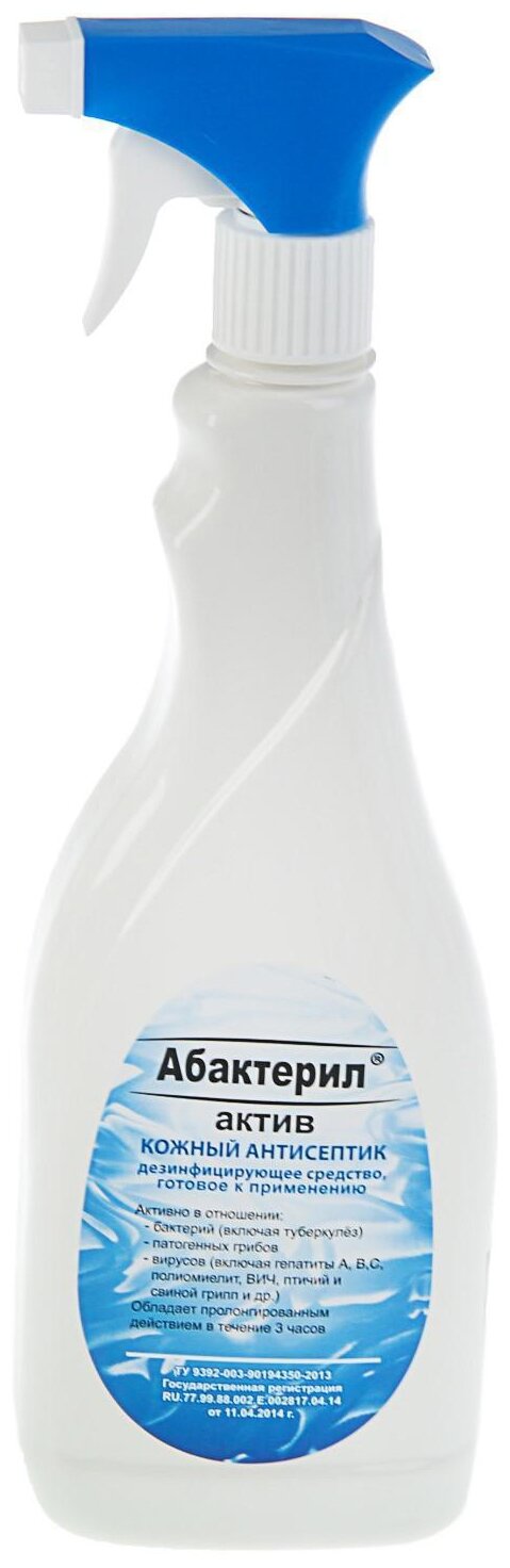 1 шт. Кожный антисептик с вирулицидной активностью ГОСТ 12.1.007-76 Абактерил-Актив 500 мл спрей
