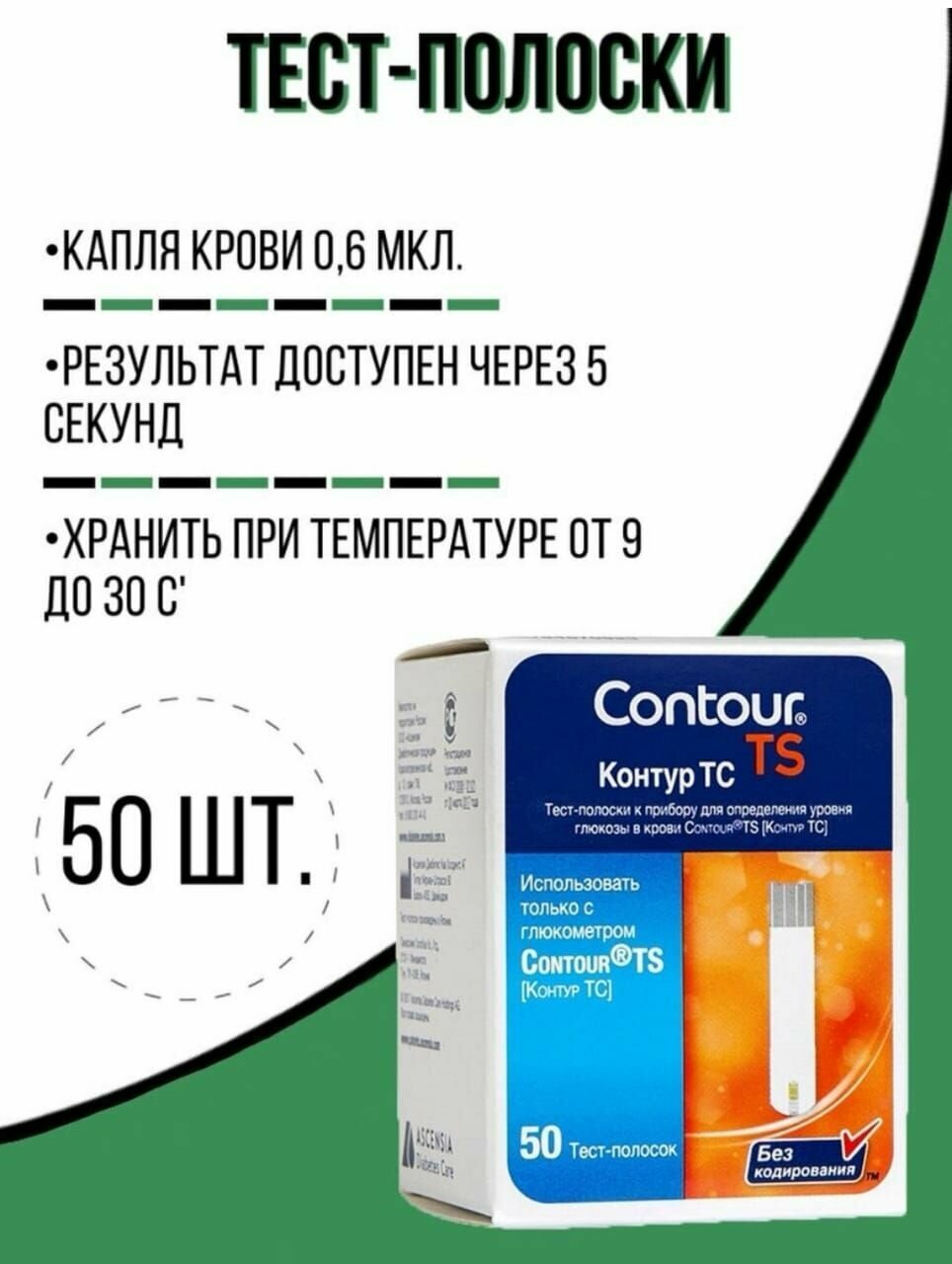 Тест-полоски для глюкометра Контур тс (Contour TS), 50шт в упаковке, 31.12.2024