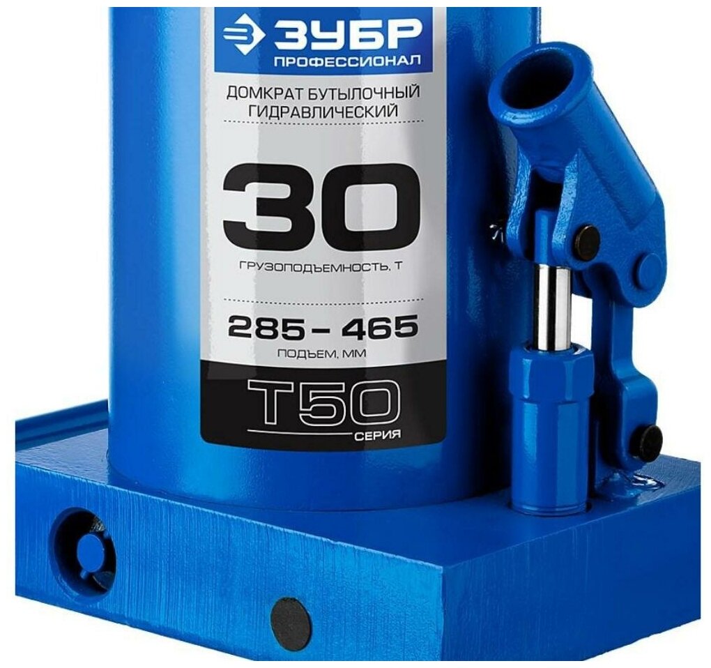 Домкрат гидравлический бутылочный T50, 30т, 285-465мм, ЗУБР Профессионал 43060-30 43060-30_z01