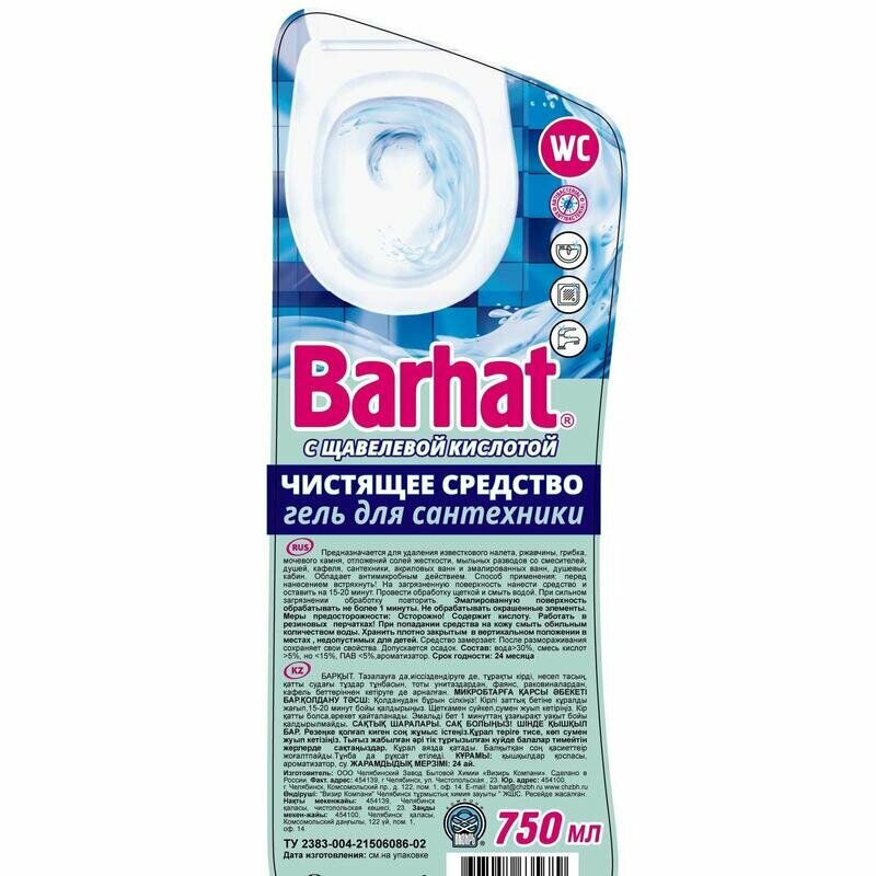 Купить Чистящее средство д/чистки и дезинфекции сантехники BARHAT, с щавелевой кислотой, гель, 750гр