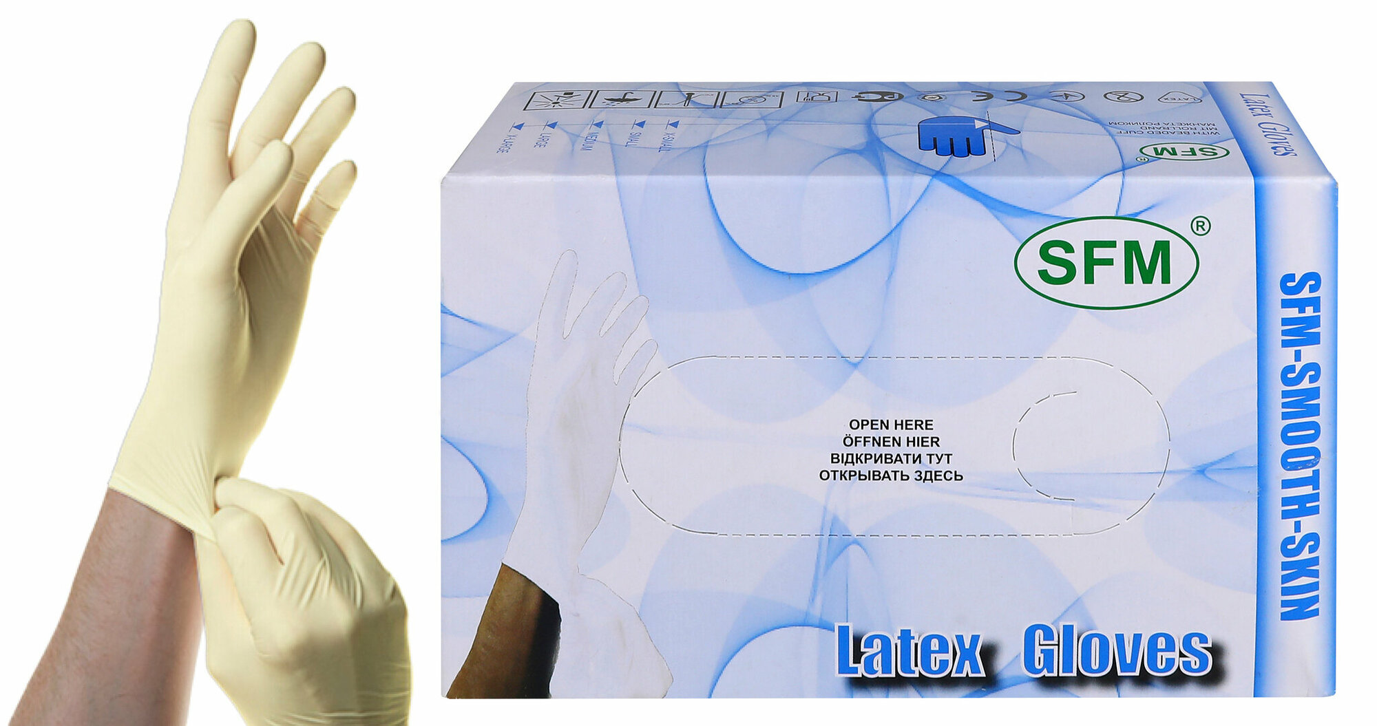 Перчатки латексные смотровые нестерильные опудренные SFM 50 пар