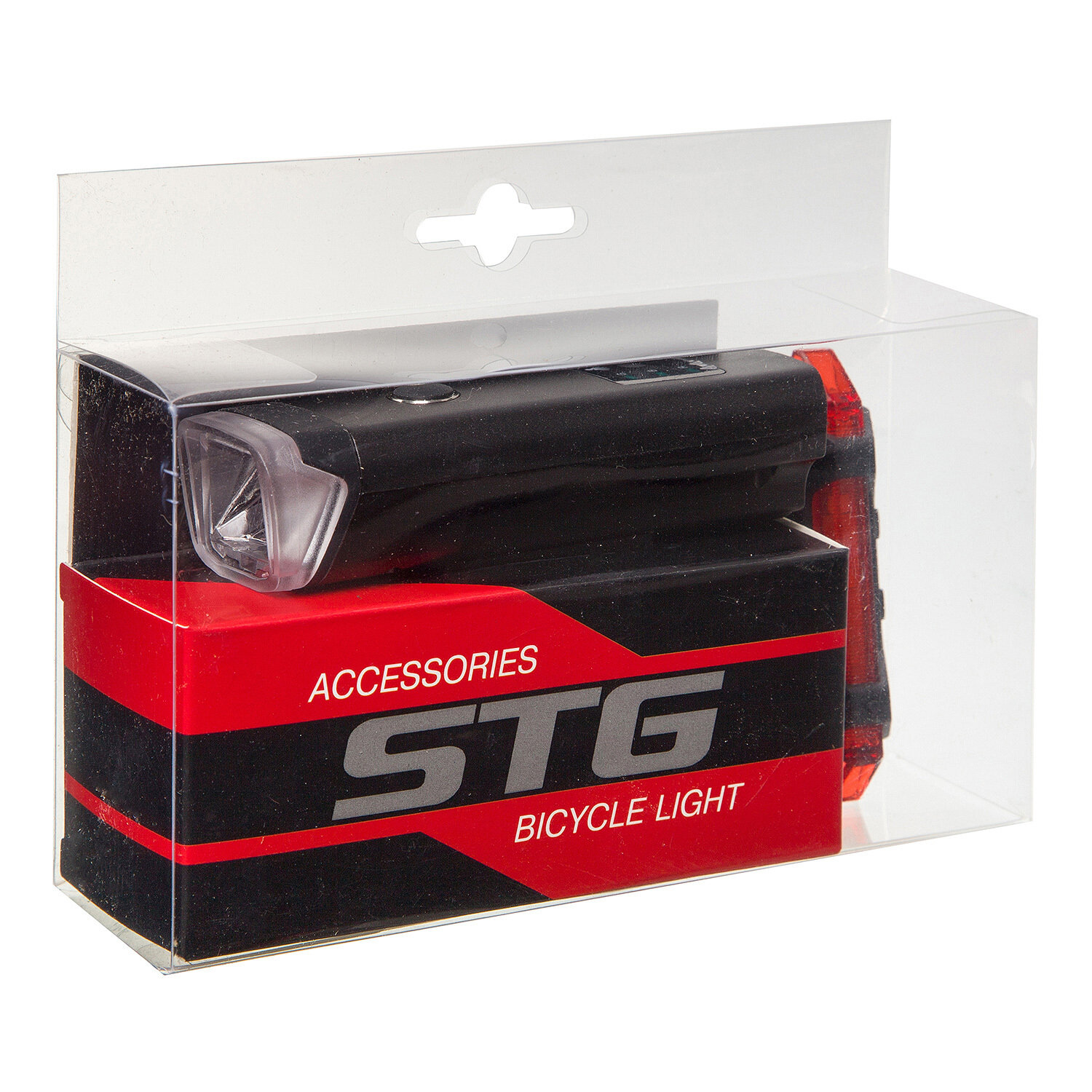 Комплект фонарей STG перед. FL1559 (350 люм. бел. Usb 2000 mAH. С датчиком света ) зад. TL5411 ( 5 красн. Диод. с линзами, Usb 220 mAH)