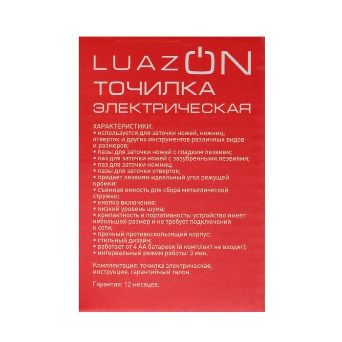 Ножеточка Luazon LTE-02, электрическая, для ножей/ножниц/отвёрток, 4хАА