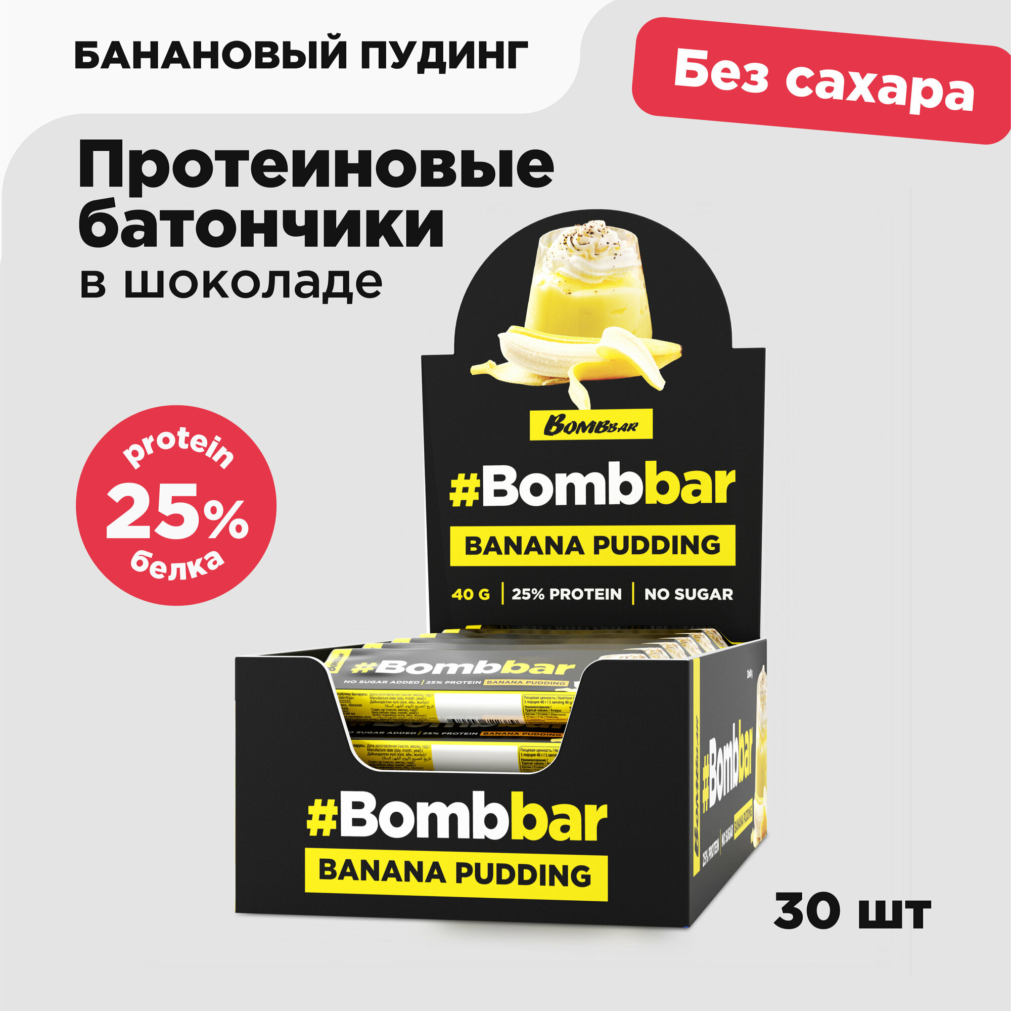 Протеиновый батончик Bombbar Батончики в шоколаде без сахара 30x40 г, Банановый пудинг
