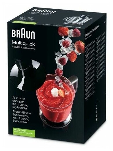 для блендера Braun: насадка-измельчитель Braun MQ40 (1,25л). Цвет черный. В комплекте два ножа