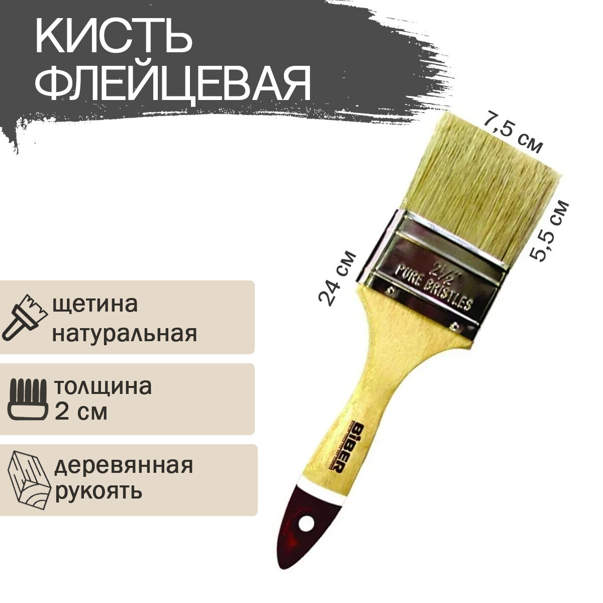 Biber Кисть флейцевая Профи серия натур. щетина дер. рукоятка 75мм 31155 тов-001983