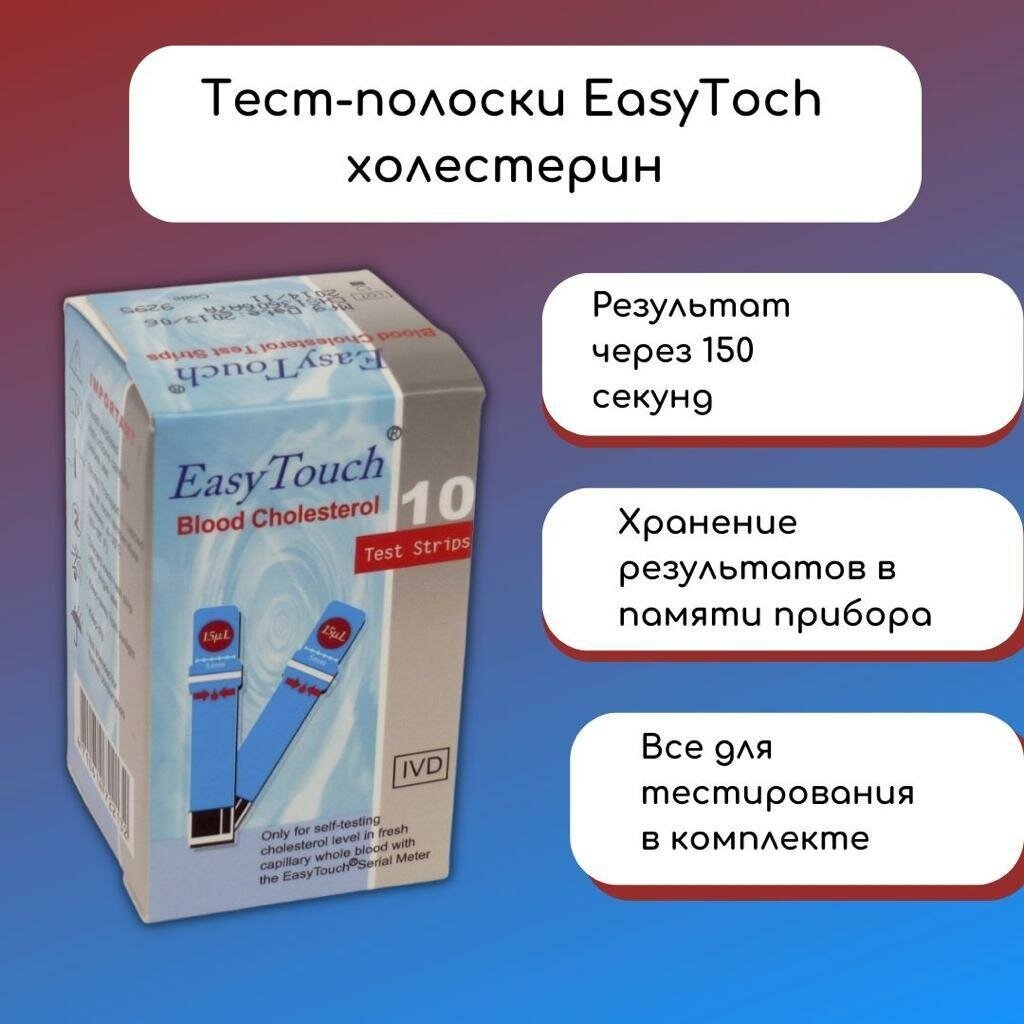 Тест-полоски для определения холестерина в крови EasyTouch (Изи Тач), 10шт.