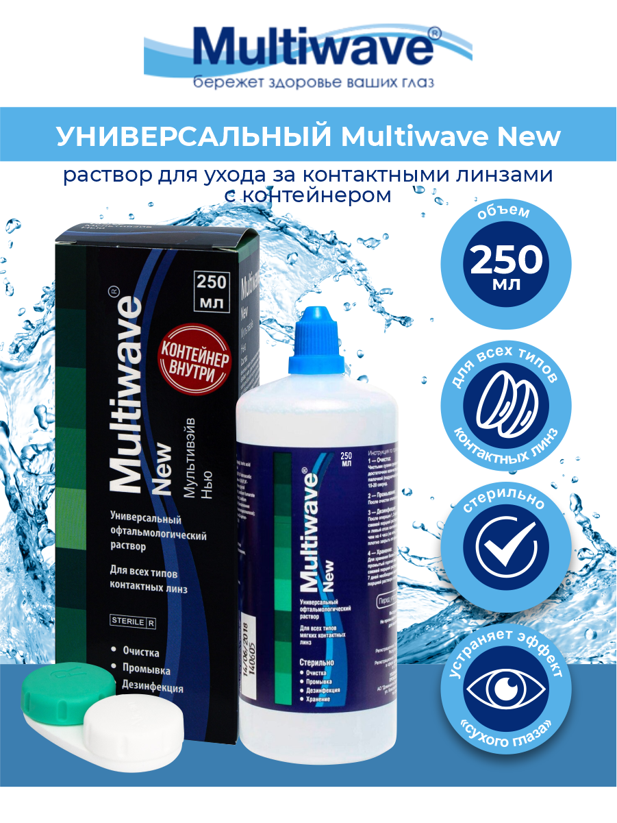 Раствор Multiwave New для ухода за контактными линзами с контейнером, 250 мл