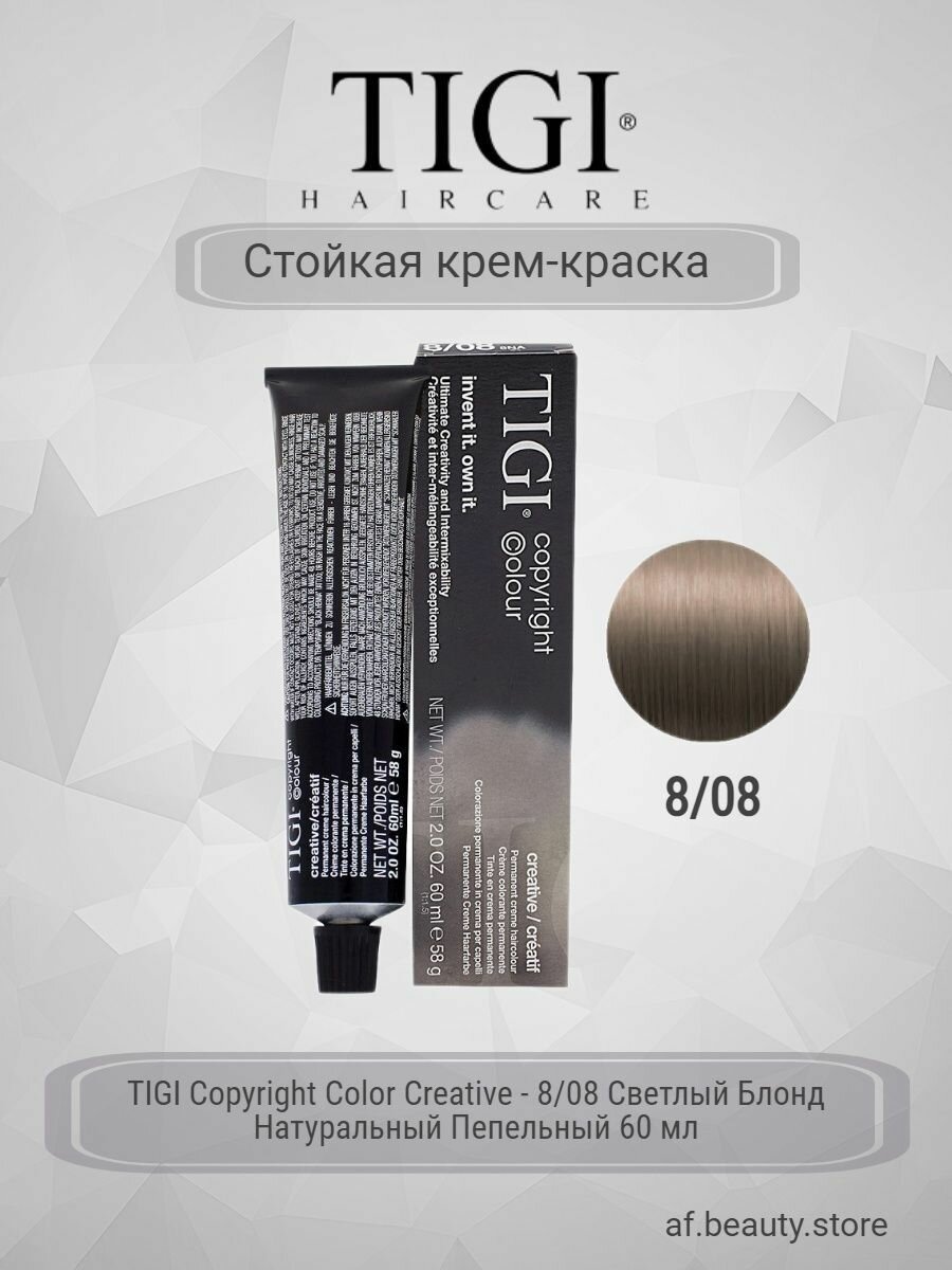 TIGI Copyright Colour Creative Стойкая крем-краска для волос, 8/08 Светлый блонд натуральный пепельный, 60 мл