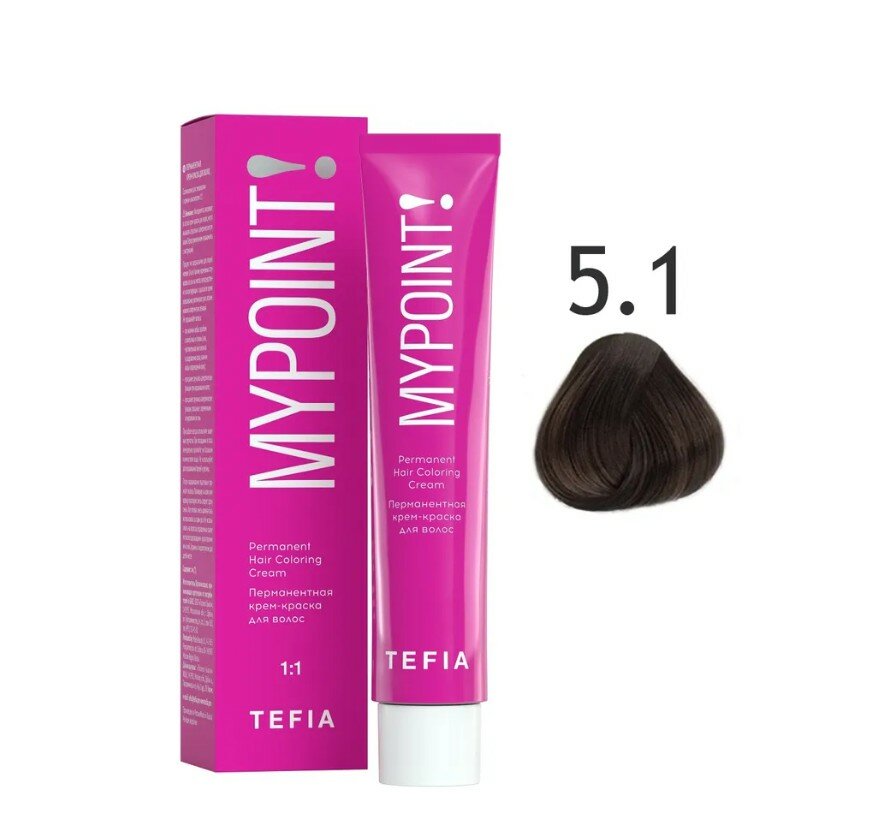 Tefia Mypoint Color перманентная крем-краска для волос, 5.1 светлый брюнет пепельный, 60мл