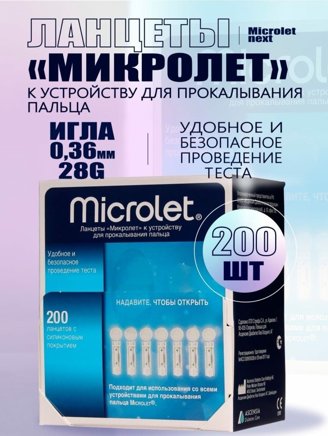 Ланцеты для глюкометра универсальные Микролет (Microlet), 200 штук