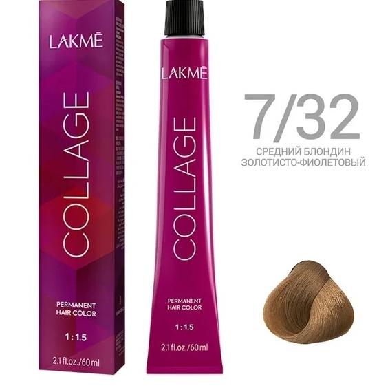 LAKMÉ, COLLAGE, Перманентная крем-краска для волос №7/12, Средний блондин пепельно-фиолетовый, 60мл