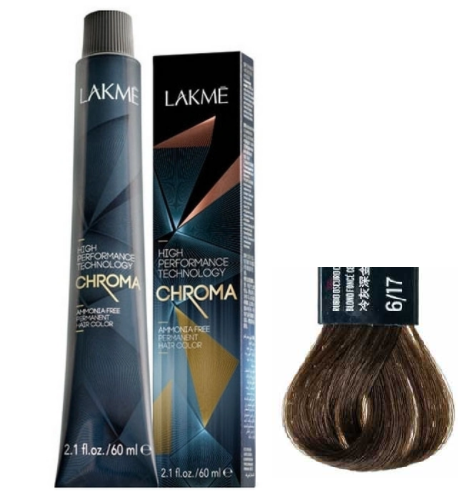 LAKMÉ, CHROMA DEVELOPER, Перманентная безаммиачная крем-краска №6/17, Темный блондин пепельный, 60 мл