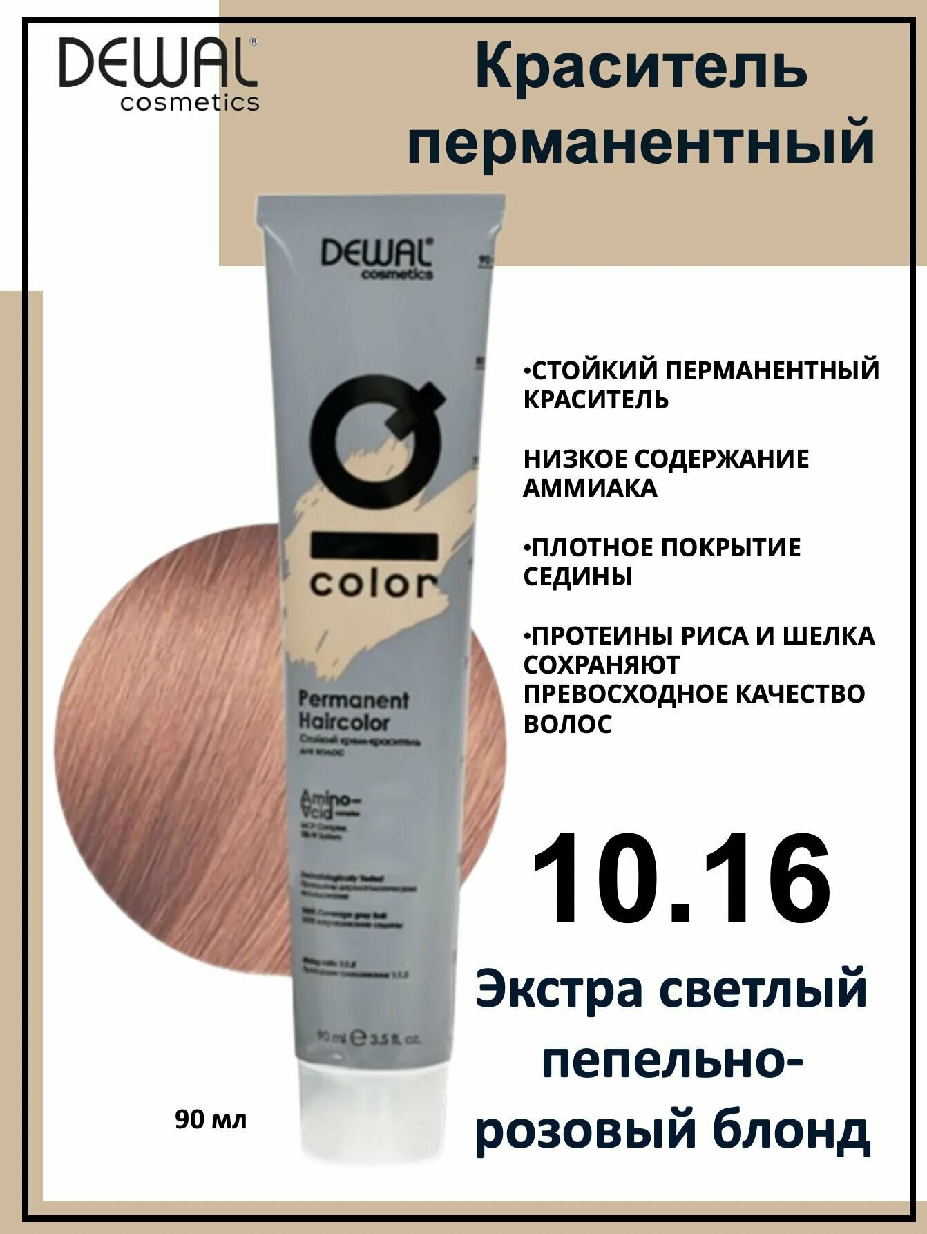Dewal Cosmetics Крем-краска для волос IQ Color 10/16 экстра светлый пепельно-розовый блонд, 90мл