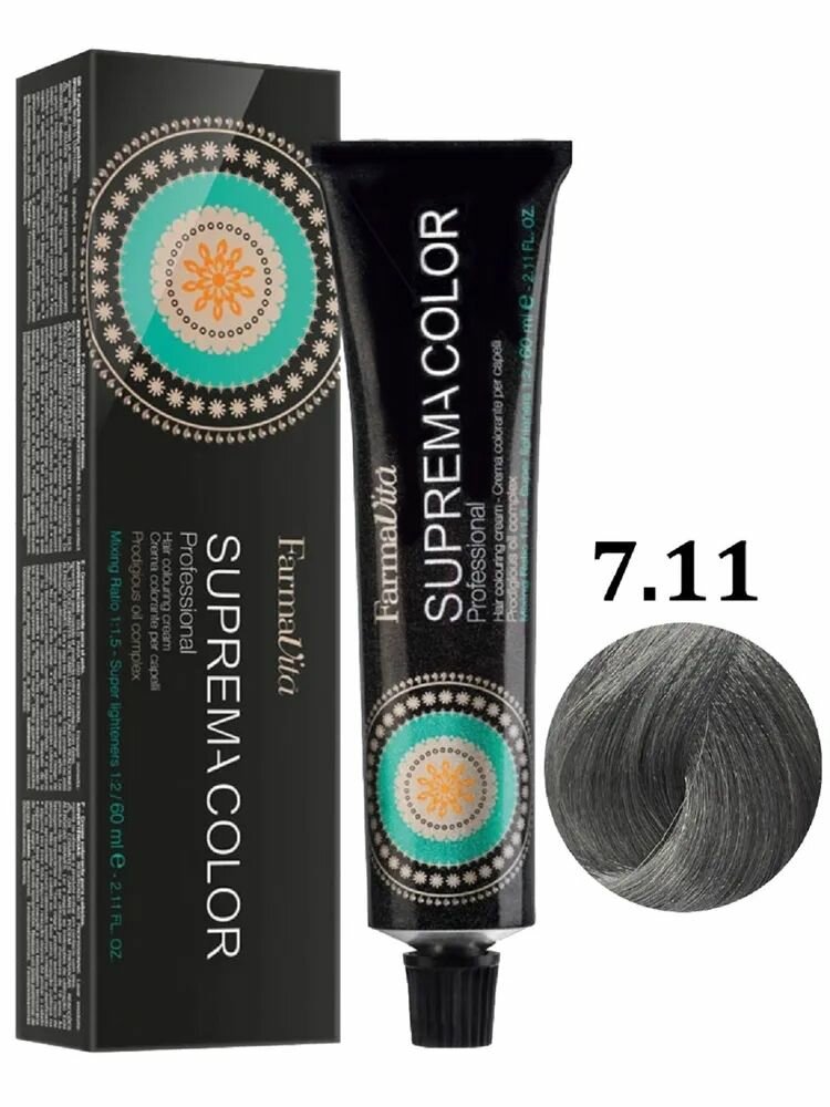 FARMAVITA / Краска для волос профессиональная перманентная 7.11 интенсивный пепельный блондин SUPREMA COLOR 60 мл, идентичен Life Color Plus