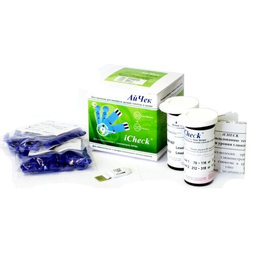 Набор iCheck/АйЧек: Тест-полоски 50шт+Ланцеты для контроля уровня глюкозы в крови 50шт