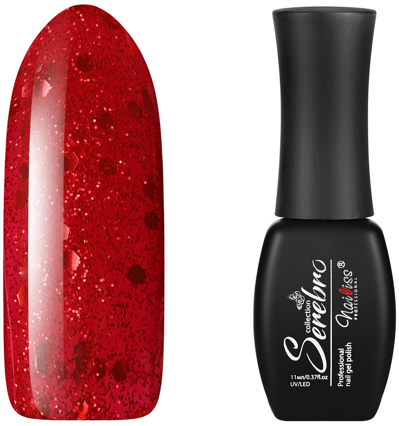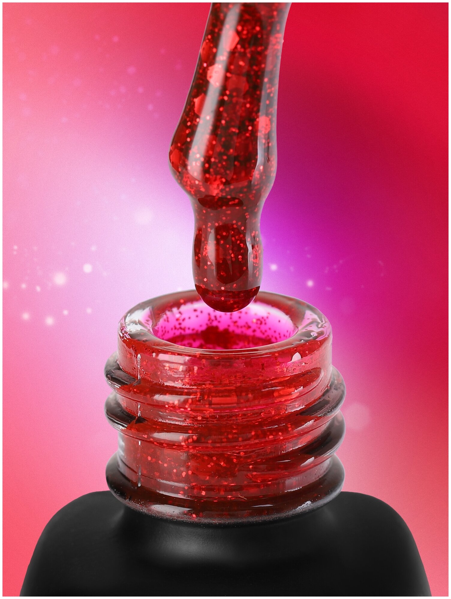 Гель-лак для ногтей Serebro с блестками, полупрозрачный гипоаллергенный, красный, 11 мл