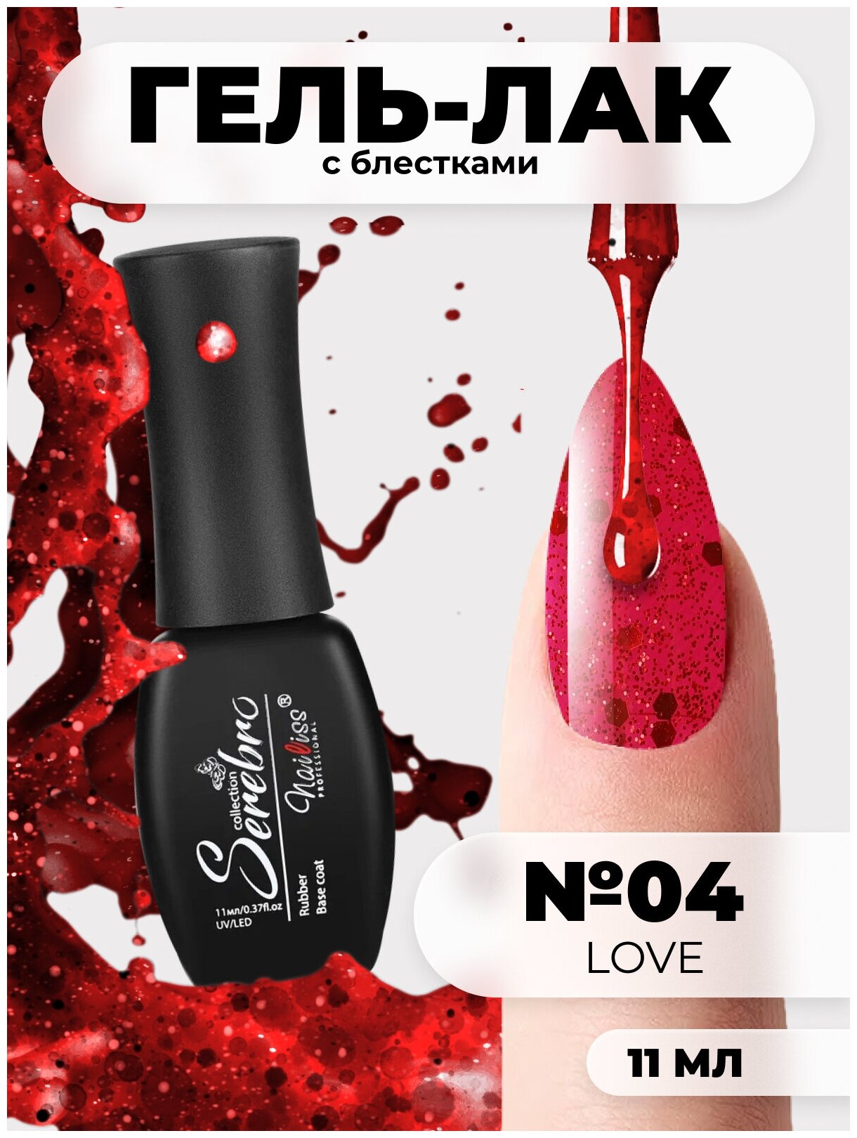 Купить Гель-лак для ногтей Serebro Love №04 с блестками для маникюра и педикюра, плотный, 11 мл