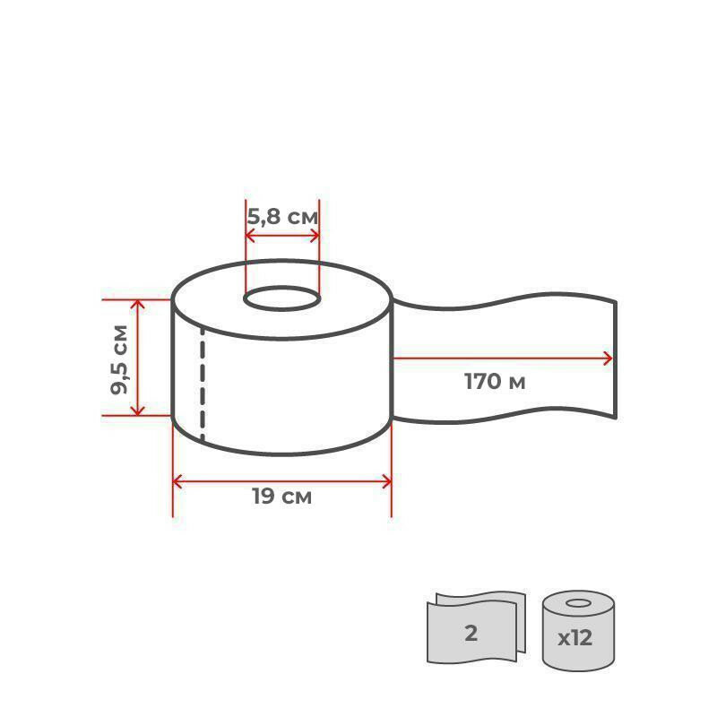 Бумага туалетная Focus Mini Jumbo, 2 слойн, 170 м/рул, тиснение, цвет белый, 12 шт