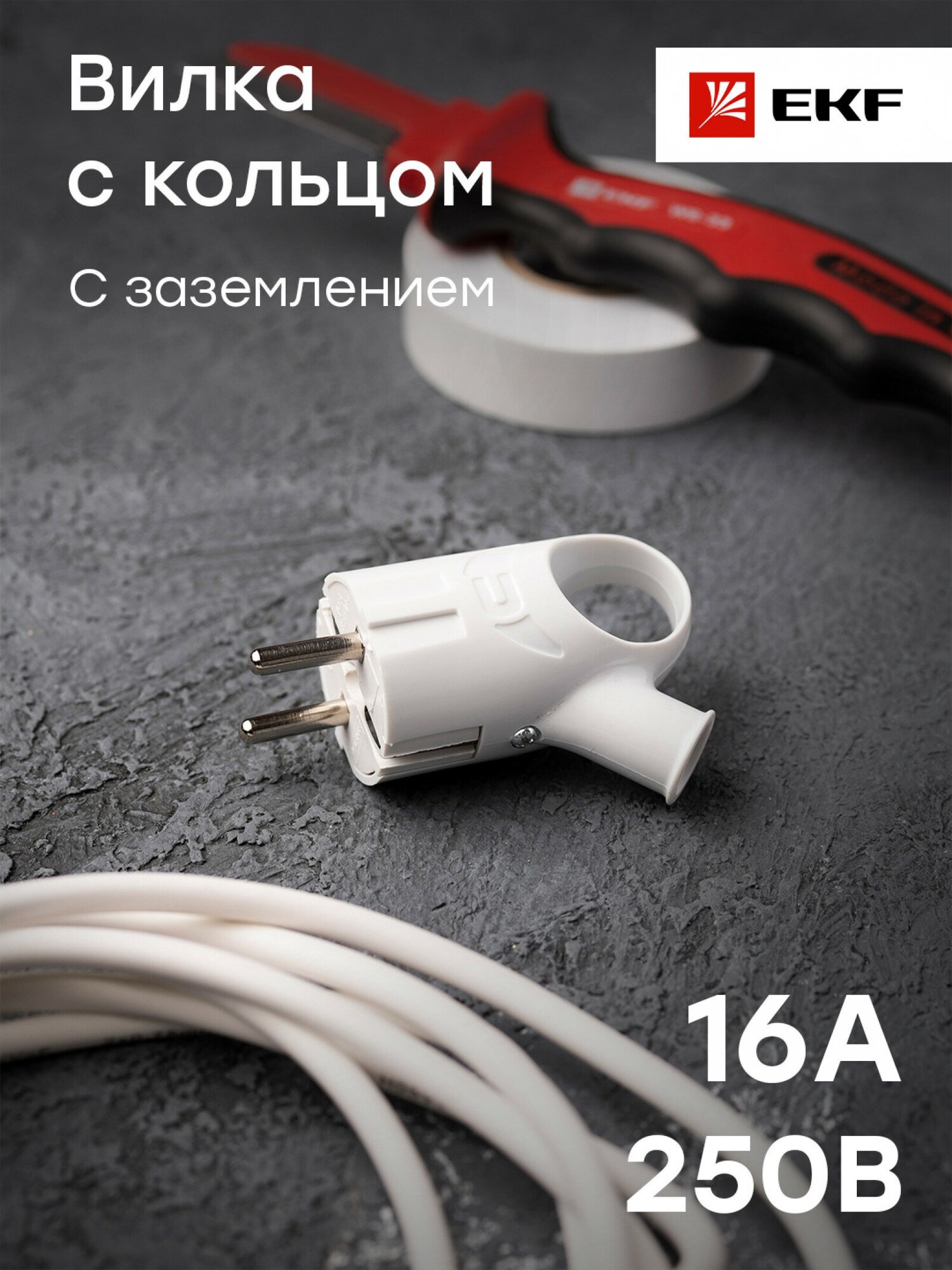 Вилка с кольцом EKF PROxima, с заземлением, 16А, 250В, белая