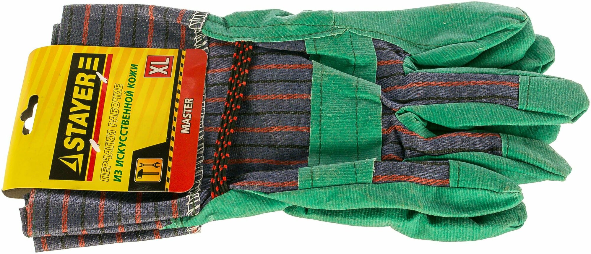 STAYER Перчатки STAYER "MASTER" рабочие, искусственная кожа, зеленые, XL
