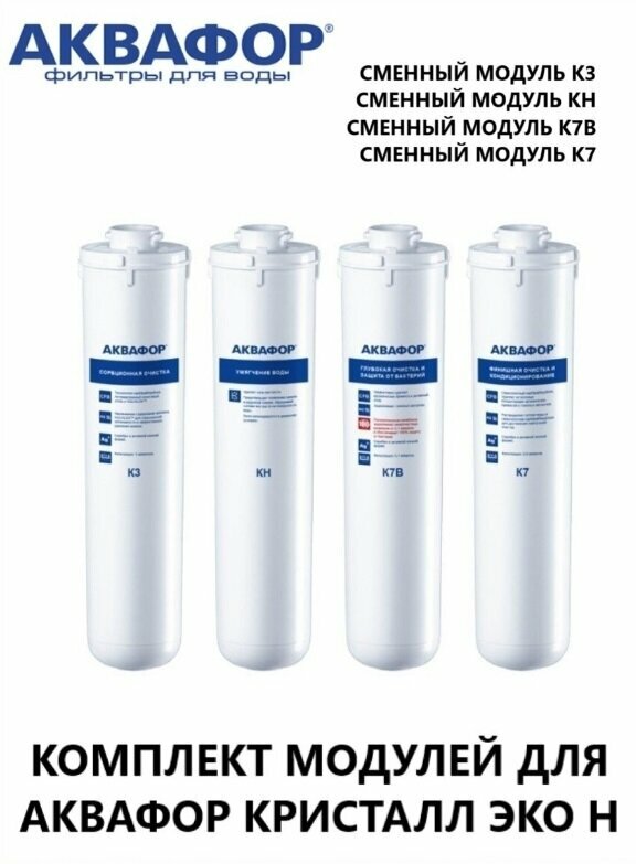 Комплект модулей Аквафор К3-КН-К7В-К7 для фильтра Кристалл Эко Н/Набор картриджей К3,КН,К7В,К7 для Кристалл