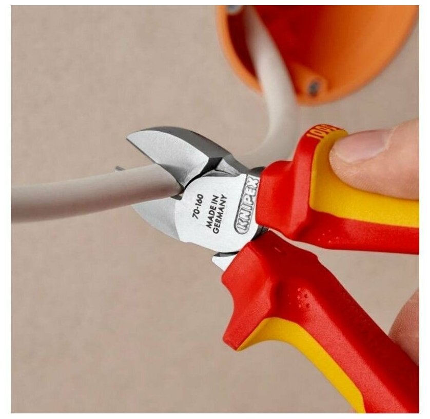 Бокорезы KNIPEX VDE, маленькая фаска, 160 мм, хром, 2-комп диэлектрические ручки KN-7026160