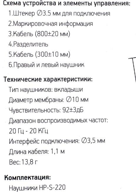 На фотографиях представлена другая модель, там показана гарнитура с микрофоном. Это видно по увеличенному блоку на стыке проводов, с кнопкой управления и отверстием микрофона. На самом деле модель HP-S-220 выполнена в том же дизайне, однако является простыми наушниками, звук которых тоже вполне хороший, но, все-таки, уступает старшей модели. |