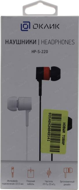Наушники Oklick HP-S-220, 3.5 мм, вкладыши, черный/красный [d2-1b/r]