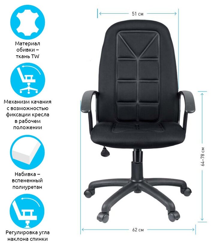 Кресло руководителя Helmi HL-E89 "Blocks" LT, ткань TW черная интересное: