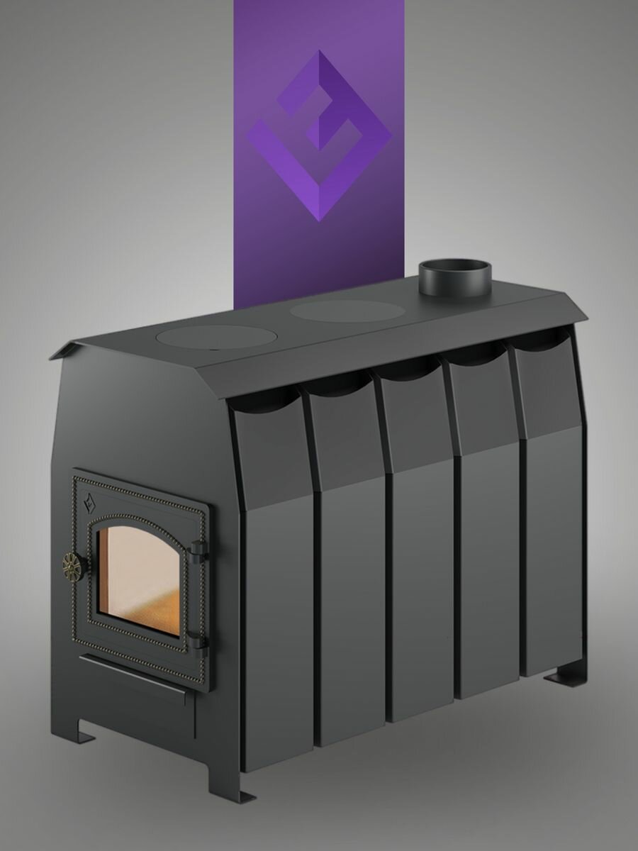 Отопительная дровяная печь Везувий "Комфорт 100" (ДТ-3) с дверкой из чугуна со стеклом и варочной поверхностью