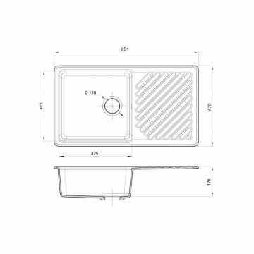 Кухонная мойка GRANFEST Quarz GF-ZL-53, кварц, 85.1см х 47.9см