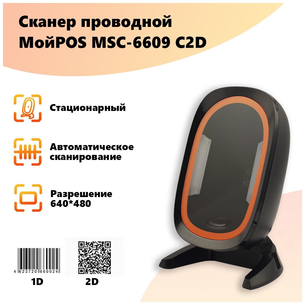 Стационарный сканер штрих-кода МойPOS MSC-6609C2D,арт. 4511, 2D, черный, проводной интересное: