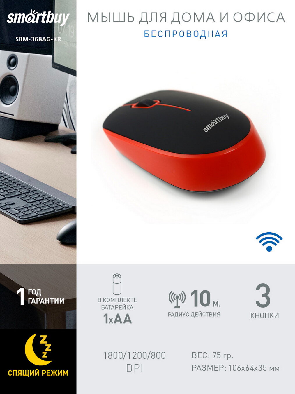 Купить Мышь беспроводная Smartbuy ONE 368AG USB/DPI 800-1200-1600/3 кнопки/1AA черно-красная (SBM-368AG-KR)