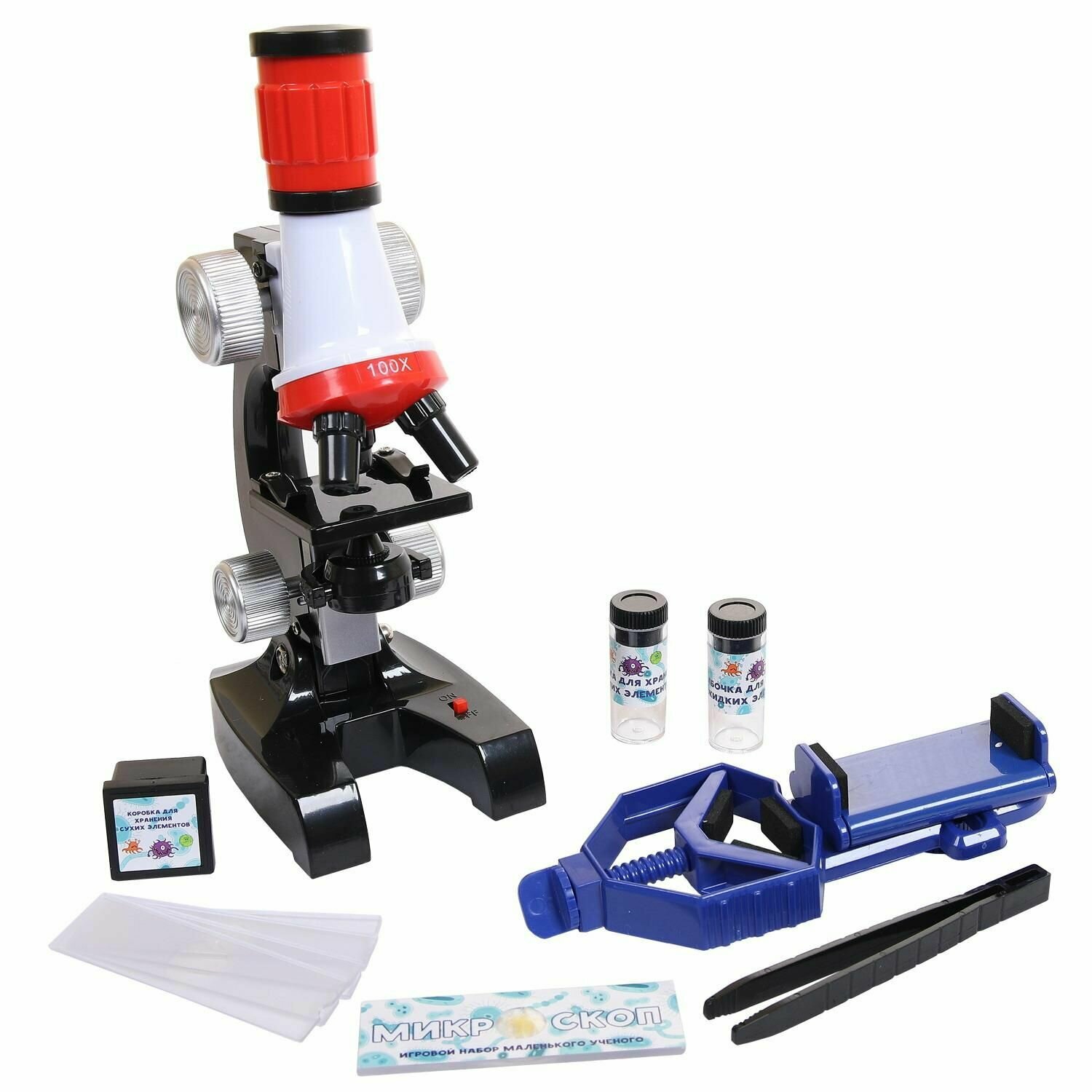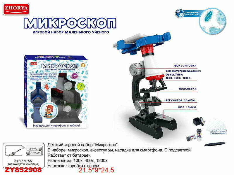 Микроскоп в наборе с аксессуарами, увеличение 100х, 400х, 1200х, в коробке, 21,5х9х24,5см ZY852908
