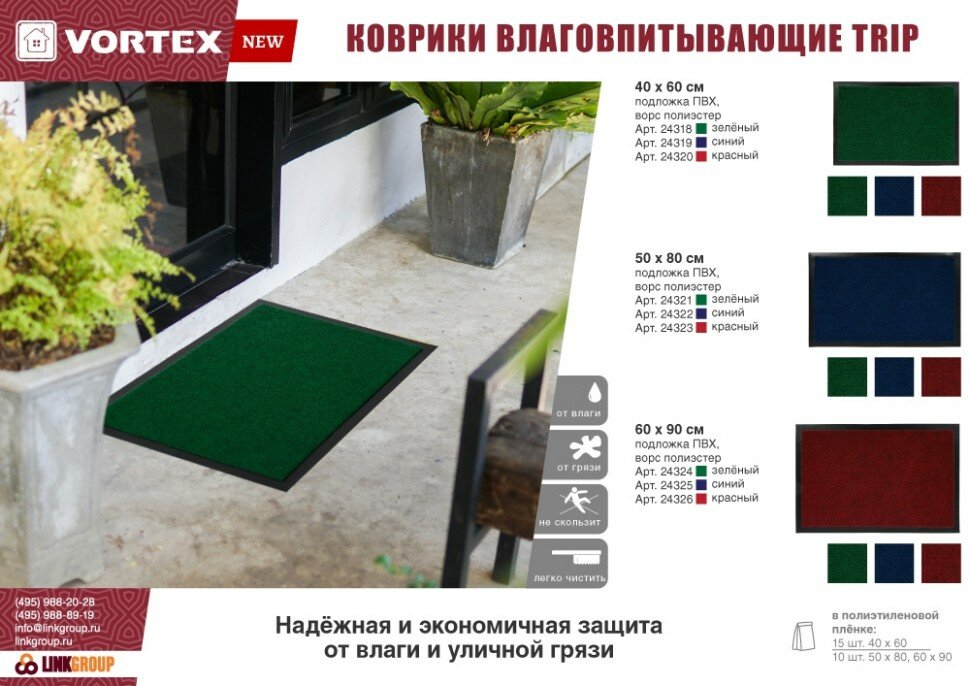 СохранитьКоврик влаговпитывающий VORTEX TRIP ребристый 40x60 см синий (24319) интересное: