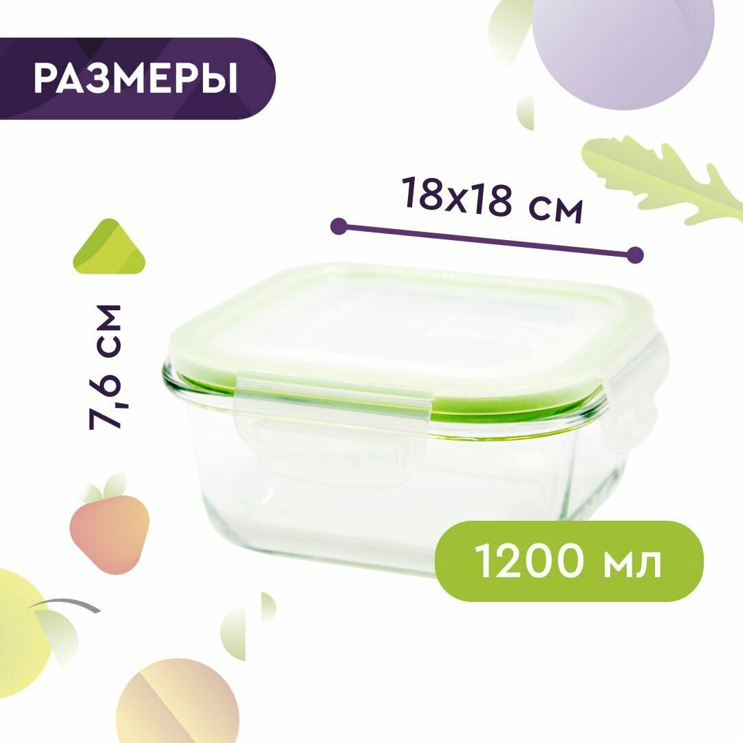 Пищевой контейнер для хранения еды из жаропрочного стекла Eley квадратный, цвет: зеленый, 1,2 л