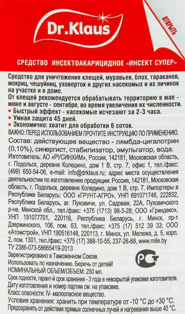 Dr.Klaus Концентрат от клещей, муравьев и других насекомых, флакон 250 мл
