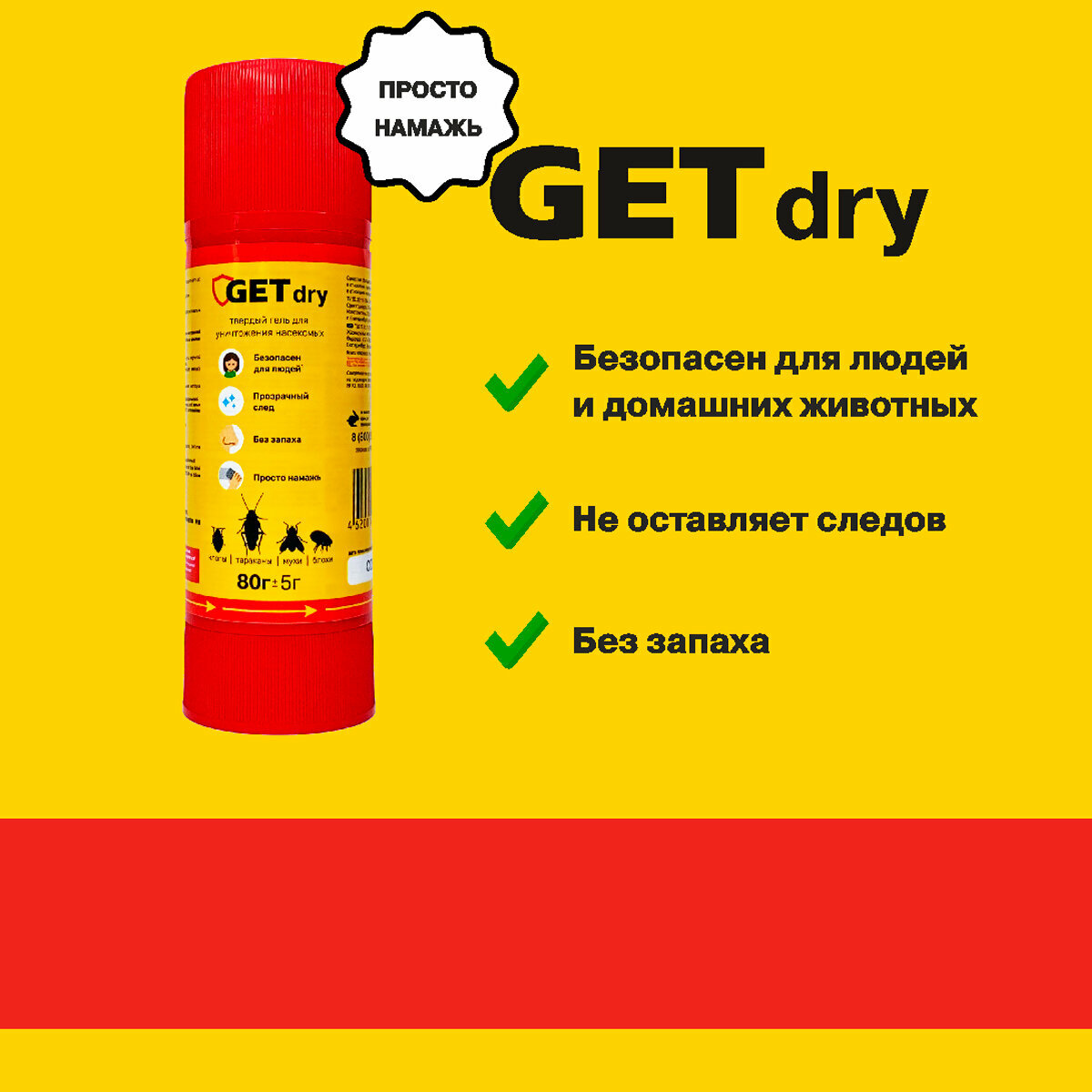 Средство от насекомых GET Dry, ГЕТ Драй 80 г, карандаш-гель