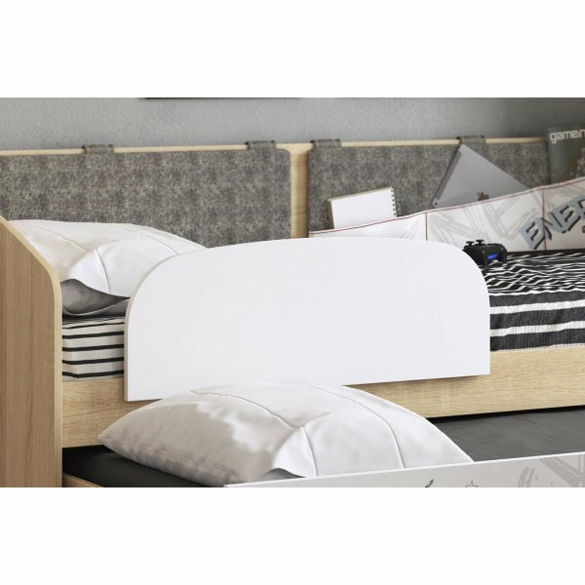 Детская кровать МебельСон Энерджи Дуб Сонома / Белый С бортиком