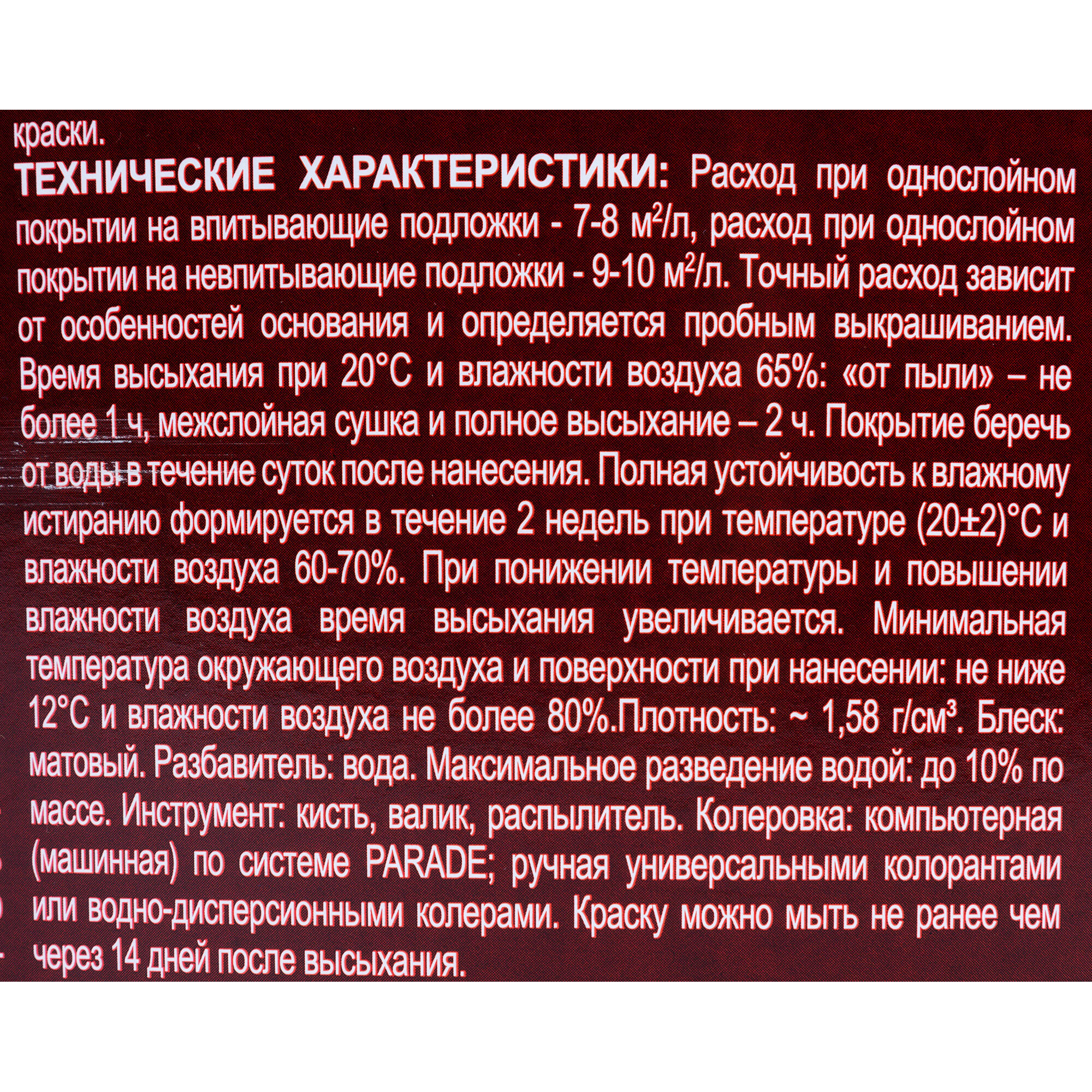 | Время высыхания | 2 часов |