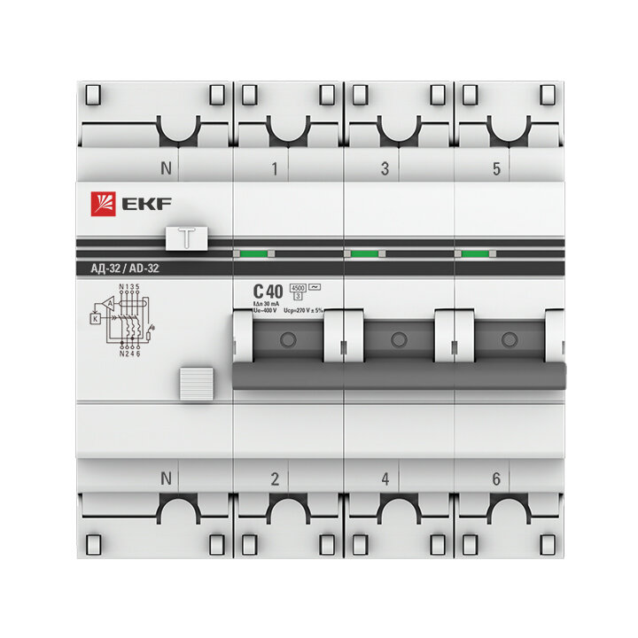 Ниже Вы можете прочитать отзывы на Дифференциальный автомат АД-32 3P+N 40А/30мА (хар. C, AC, электронный, защита 270В) 4,5кА EKF PROxima, ознакомится с подробными характеристиками, посмотреть интересные обзоры и фотографии на Дифференциальный автомат АД-32 3P+N 40А/30мА (хар. C, AC, электронный, защита 270В) 4,5кА EKF PROxima.