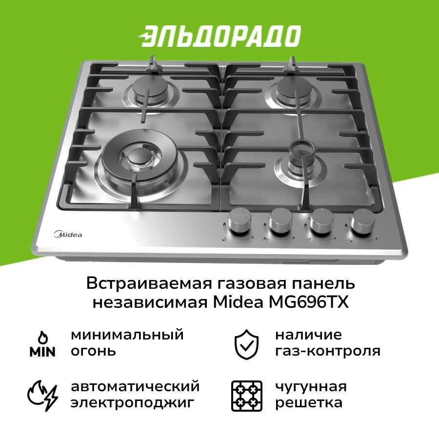 Встраиваемая газовая панель независимая Midea MG696TX интересное: